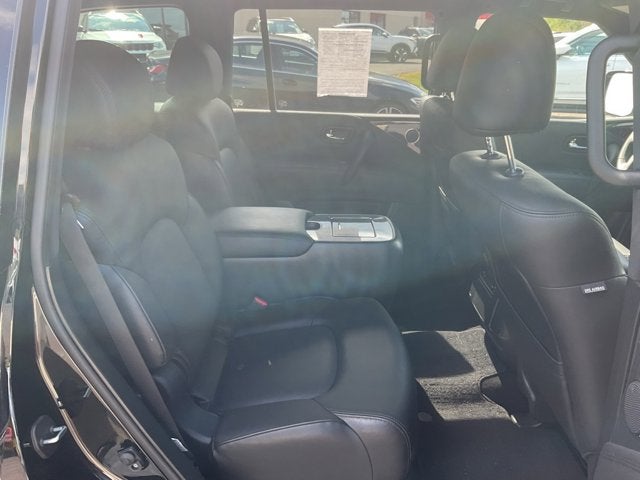 Clean CARFAX. CARFAX One-Owner. 2023 Nissan Armada SL Super Black 4WD 7-Speed Automatic 5.6L V8 DOHC 32V LEV3-ULEV125 400hp Armada SL, 4WD, 20" Wheels, 20" x 8J Aluminum Alloy Wheels, 2nd Row Captain's Chairs, 3rd row seats: split-bench, Auto-Dimming Exterior Mirror w/LED Turn Signals, Black Painted Grille, Black Painted Roof Rails, Bose 13-Speaker Premium Audio System, Captain's Chairs Package, Exterior Parking Camera Rear, Heated Front Bucket Seats, Heated steering wheel, Leather Appointed Seat Trim, Memory seat, Midnight Edition Package, Navigation System, NissanConnect featuring Apple CarPlay and Android Auto, Power Liftgate, Power moonroof, Radio: NissanConnect w/SiriusXM, Speed control.